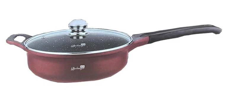 Bachmayer BM-7854-28 préselt aluminium serpenyő tapadásmentes márvány bevonattal, üveg fedővel, fogantyúval, 28 cm Ø, 3.4 Liter, Bordó
