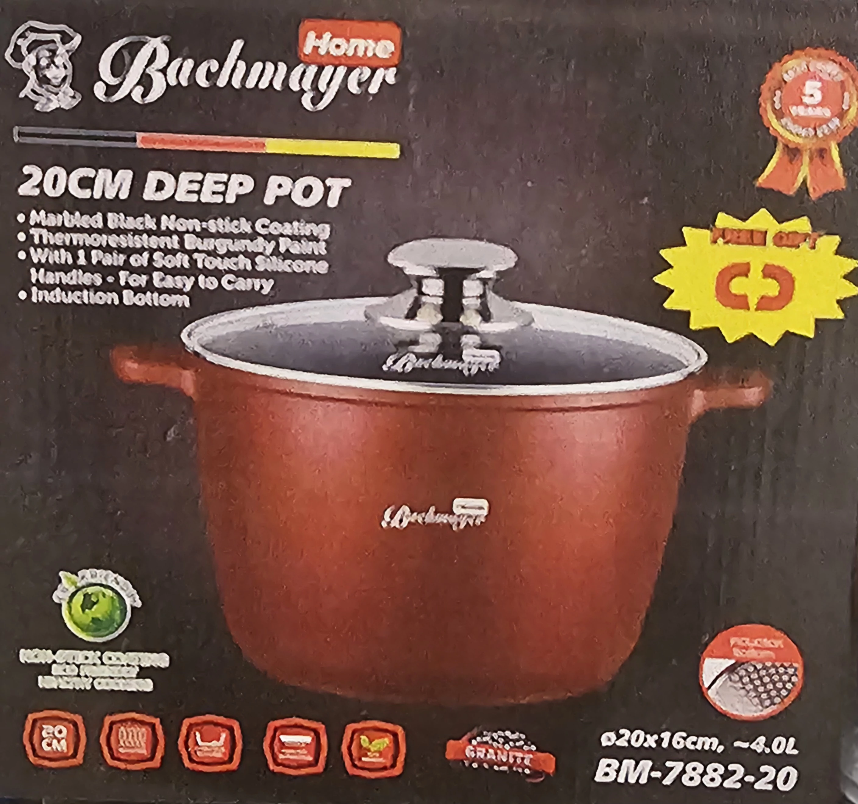 A Bachmayer Home BM-7882-20 egy kiváló minőségű, 20 cm átmérőjű mély főzőedény, amely tökéletes választás levesek, főzelékek, pörköltek és más nagyobb mennyiségű ételek elkészítéséhez. Elegáns, burgundi színű külseje és praktikus, modern kialakítása minden konyhába illik.