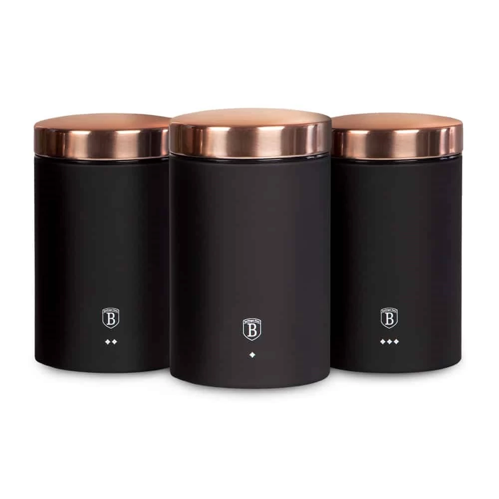 A Black Rose Collection egy modern és stílusos választás a háztartások számára, amely nem csak praktikus, de dekoratív is. A rozsdamentes acélból készült szett tartalmaz egy cukor tartót, egy tea tartót és egy kávé tartót, amelyek mindig kéznél vannak.