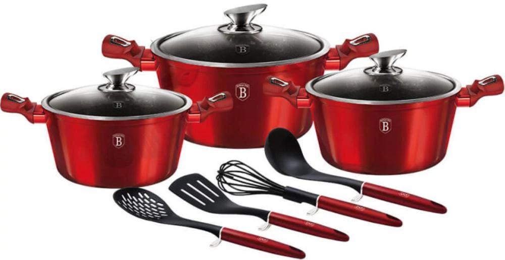 Berlinger Haus Metallic Burgundy Line 10 részes edénykészlet márvány bevonattal - BH-6150