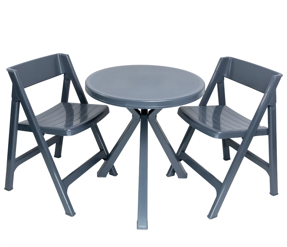 Műanyagból készült balkon szett, 1 db asztalt és 2 db széket tartalmaz