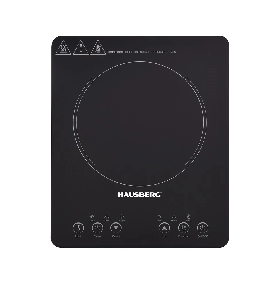 Indukciós főzőlap Hausberg HB-1525NG, 2000W, Érintésvezérlés, egy főzési zóna, fekete