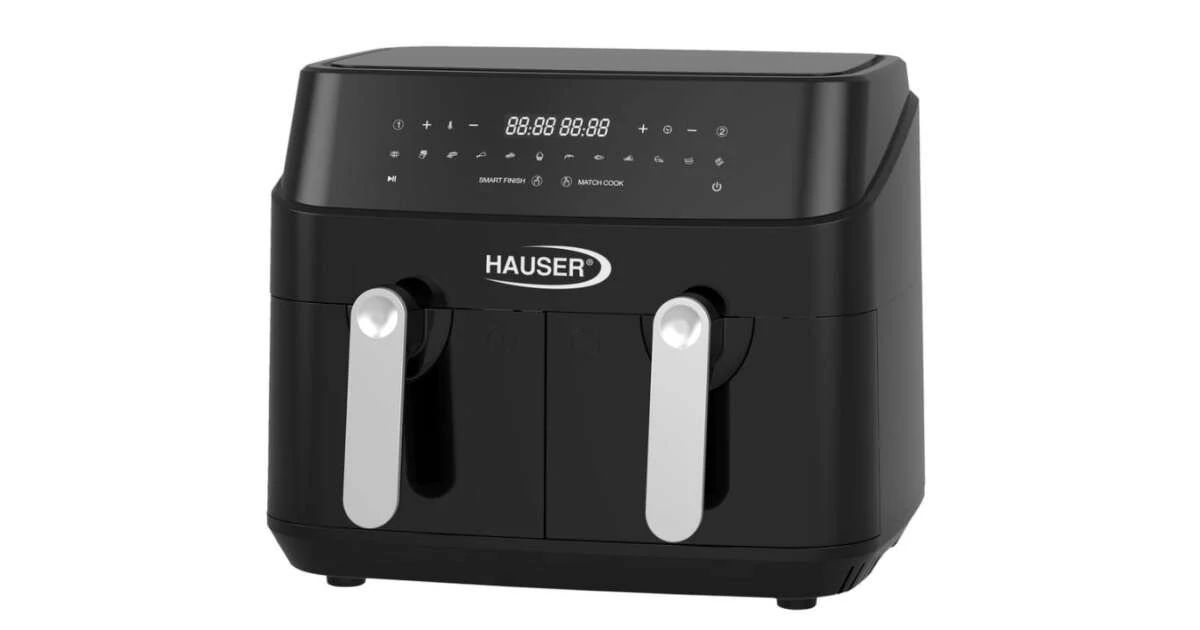Hausmeister HM 6936 Air Fryer Bio fritu forrólevegős sütő,dupla 9L=4,5L+4,5L 2000W Kivehető grill rács idő- és hőfok beállítással
