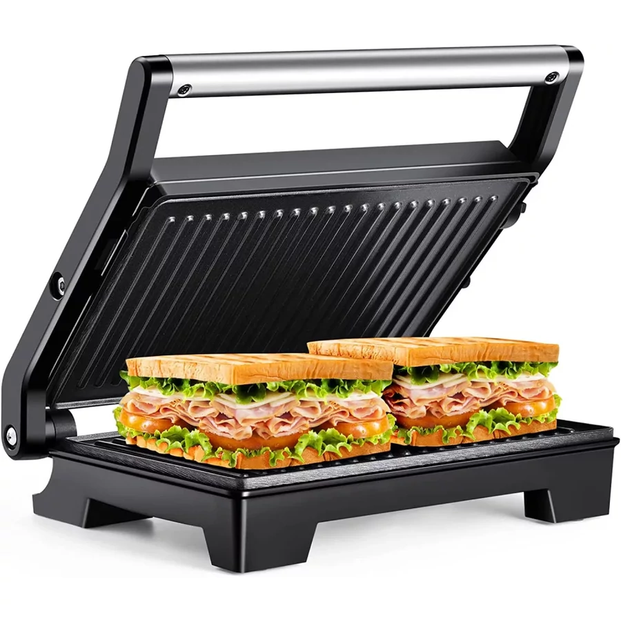1000 W-os fűtőteljesítmény az elektromos panini préses szendvicssütő, fűtőelemmel és automatikus termosztáttal ellátott, kétoldalas sütő panini lapokkal rendelkezik a gyors, ízletes és egyenletes sütéshez, grillezéshez.