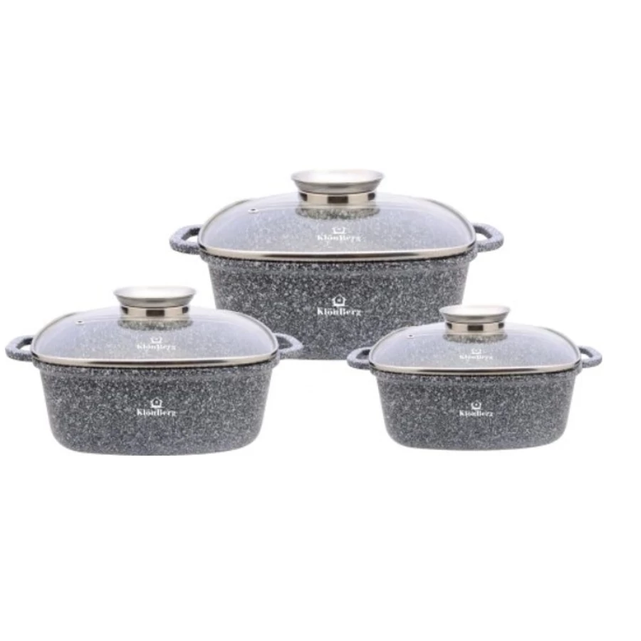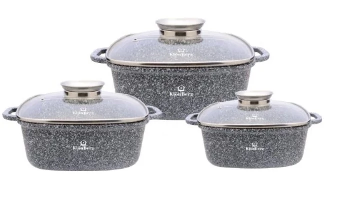 Nanotechnológiai eljárással készült, tapadásgátló bevonattal ellátott 6 elemes edényszett, gránitpor (márványutánzó) keverékével, rendkívül sűrű, kompakt és sima réteget hozva létre a felületen.