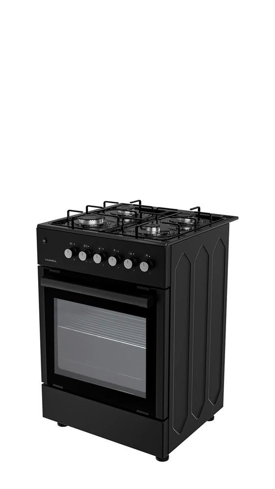 Szabadonálló, 4 gázégő, zománcozott edénytartó, szikragyújtó, elektromos sütőtér, alsó fűtőszál, duplaüvegű sütőajtó