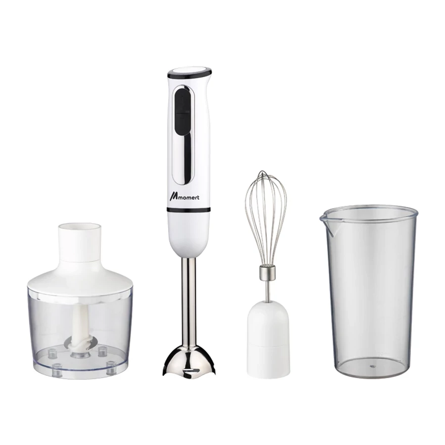 Momert 2222 Botmixer szett, 600 W, 2 sebességfokozat, Levehető mixerfej, 600 ml-es keverőpohár, 860 ml-es aprító, habverő, Fehér