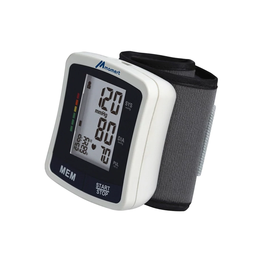 Momert 3102 Csuklós vérnyomásmérő, 0-300 mmHg, 30-180/perc pulzus, 120 memóriahely 2 csoportban, LCD kijelző, Átlagérték, 135-215 mm-es csuklókerülethez