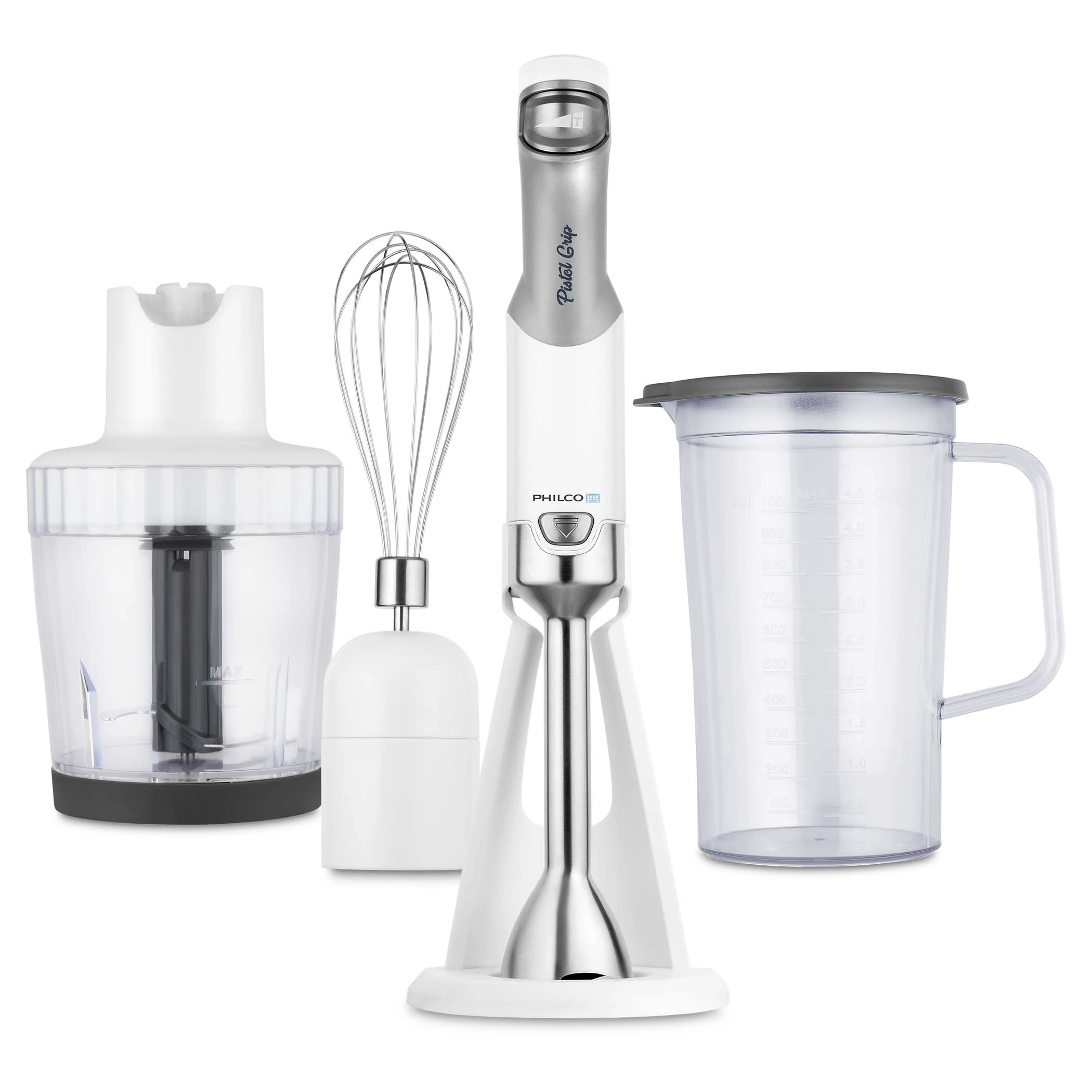 PHILCO PHHB 6615 Botmixer szett, 1200W, 600 ml mixelő és 500 ml aprító edény, Tejhabosító, Ballonos habverő, Rúdmixer fej, Fekete-Ezüst