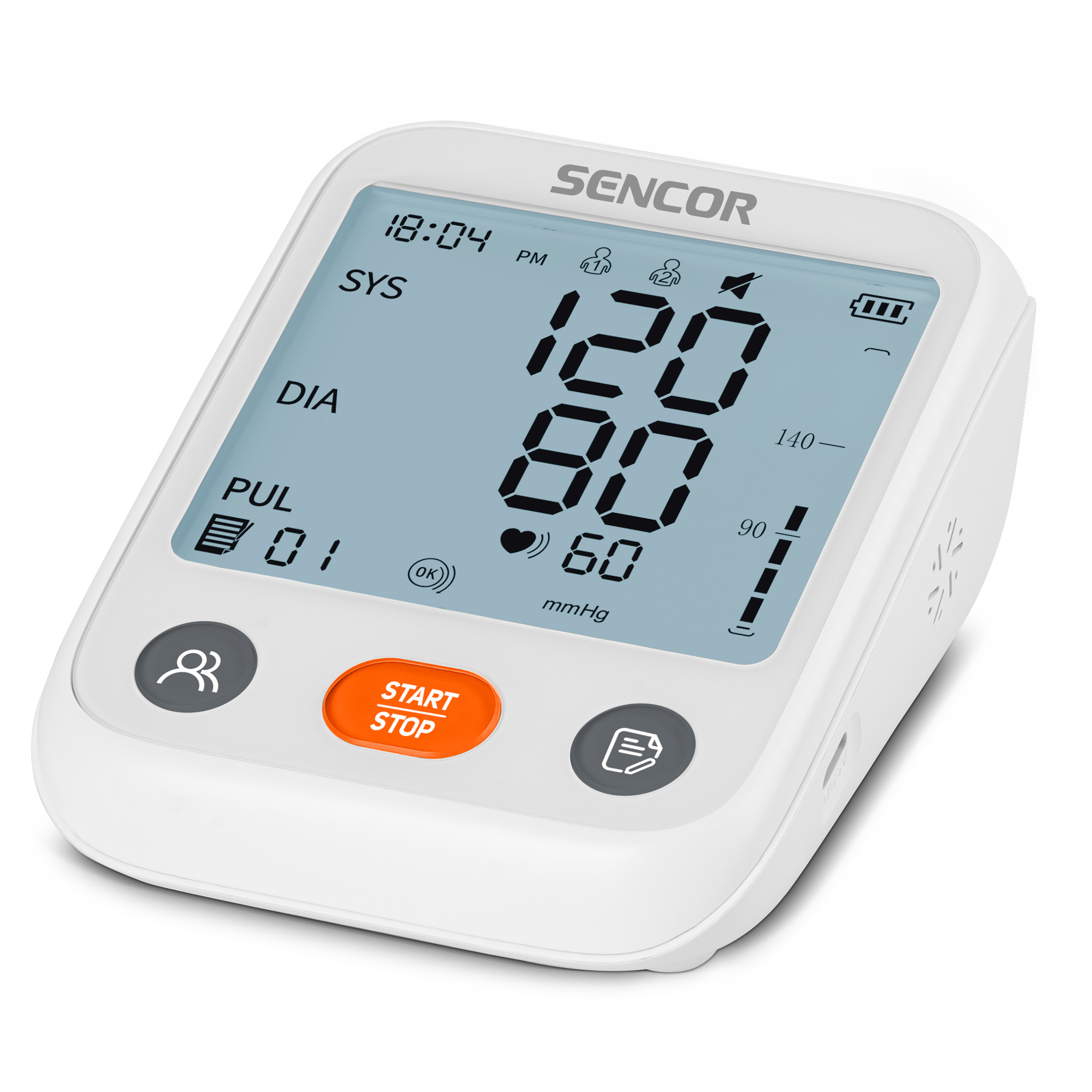 A Sencor SBP 1150WH felkaros vérnyomásmérő segítségével folyamatosan akár otthonában is ellenőrizheti vérnyomását. Az eszköz jól olvasható kijelzővel és nagy pontossággal méri a vérnyomást és a pulzusszámot. Méri a szisztolés és diasztolés vérnyomást és szívverést, illetve lehetőség van a magas vérnyomás grafikus megkülönböztetése (mérsékelt / közepes / erős hipertónia). A beépített memória az utolsó 199 mérést képes tárolni, elemcsere esetén az mentett adatok nem törlődnek.