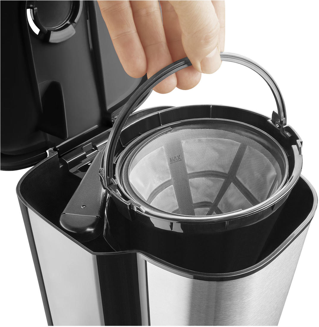 Az eldobható szűrő nélkül is jól működik. Élvezze a kávét úgy, hogy tudja az óvja s környezetét és még pénzt is megspórol. A kivehető szűrő könnyen tisztítható, újra felhasználható és nem szívja fel a kávé aromáját. Minden kávé kivételes ízű lesz, mint például egy papírszűrő esetén. Ezenkívül a fűtőlapnak köszönhetően fenntartja a kávé optimális hőmérsékletét, és így nem kell újra melegíteni.