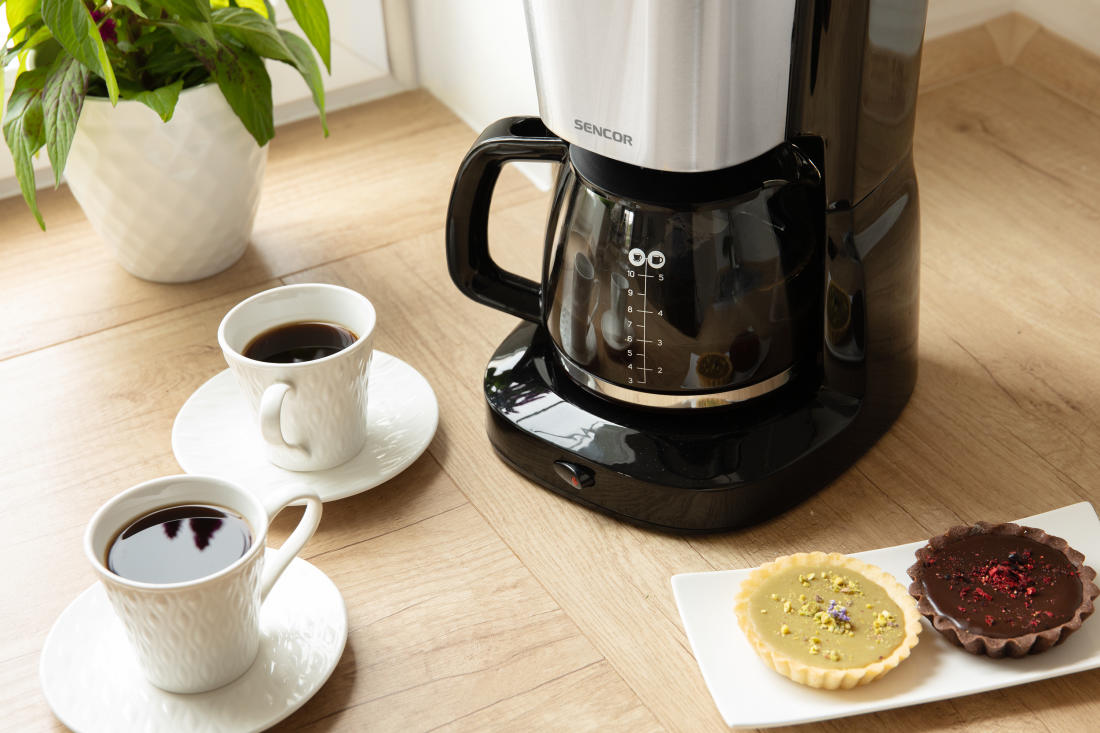 A Sencor SCE 3050SS egy klasszikus filteres kávéfőző. Víztartály kapacitása maximálisan 1,25 liter, így elég, hogy az egész családnak készítsen benne teát vagy épp kávét. Egyszerre akár 10-12 csészére való forró ital is készíthető benne, a víztartályon és kannán vízszintjelző segít az eligazodásban a csészék számával is feltüntetve. Egyszerű fekete külseje könnyen tisztítható, valamint kezelése egyszerű. A Drip Stop funkciónak köszönhetően bármikor ki-, és vissza teheti a kannát felesleges csepegés nélkül.