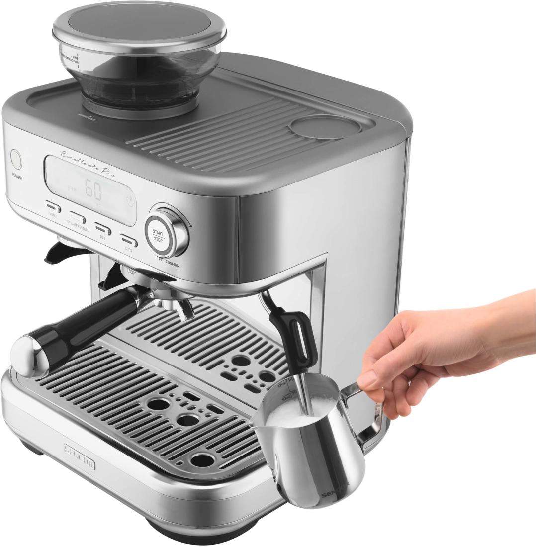 A kiváló kávé több fontos eljárások kombinációjának eredménye, amelyek közül az egyik a nyomás, a 15 bar. És mi teszi lehetővé a megfelelő nyomást a kávégyártásban? Az őrölt kávé és az előfőzés megfelelő összenyomása sok összetevőt szabadít fel a kávéból, amelyek az eszpresszót tökéletes illatú és ízléses csésze kávévá teszik. Az előfőzés alacsony nyomáson megy végbe, ami a kávé duzzanatát okozza, majd teljes nyomás alatt forró víz kezd folyni a kávén. A SES 6050SS készülékbe épített kúpos köszörűkövekkel ellátott darálójával 15 különböző őrlési finomságot állíthat be az ízlésének és a kávé pörkölésének megfelelően.