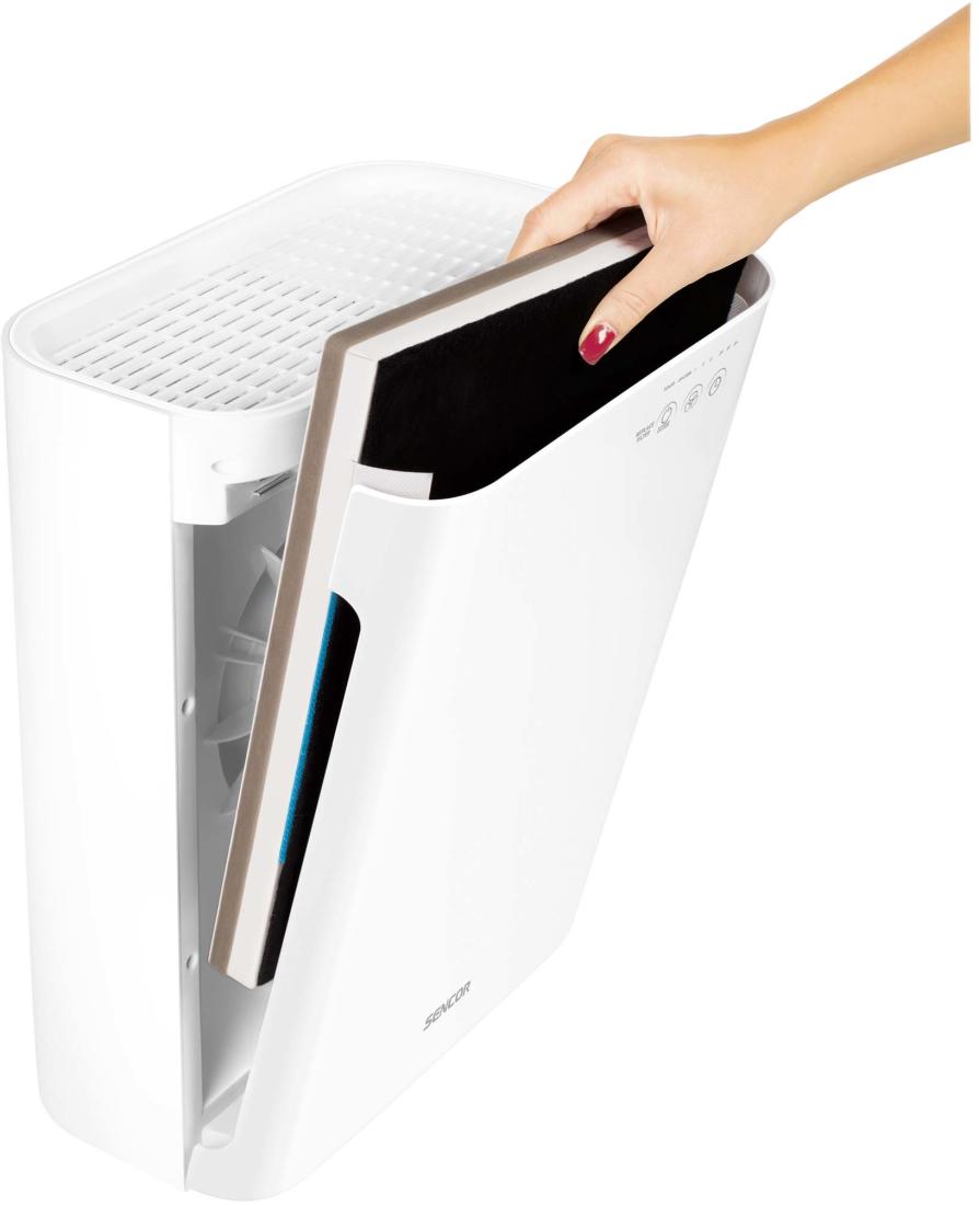 A Sencor SHA 8400WH-EUE3 légtisztító készülék az elegáns megjelenése mellett, kellemes levegőt garantál és ideális választás légúti betegségben szenvedő felhasználó számára. A 3 fokozatú szűrési rendszer biztosítja a lehető legnagyobb hatékonyságot. A bemeneti szűrő felfogja a durva szennyeződéseket és az allergén anyagokat, a szénszűrő elnyeli a formaldehideket, a benzolt és az egyéb káros gázokat. A kulcsfontosságú HEPA filter hatékonyan megszűri a különböző baktériumok, porszemcsék és pollenek majdnem 99%-át. A beépített UV-C sugárzás, megöli a baktériumokat, vírusokat és penészgombákat, beleértve a toxinjaikat is. Lehetősége van 3 tisztítási sebesség közül választani és az időzítő kapcsolóval beállítható automatikus kikapcsolási funkció is. (2, 4 és 8 óra üzemelés után).