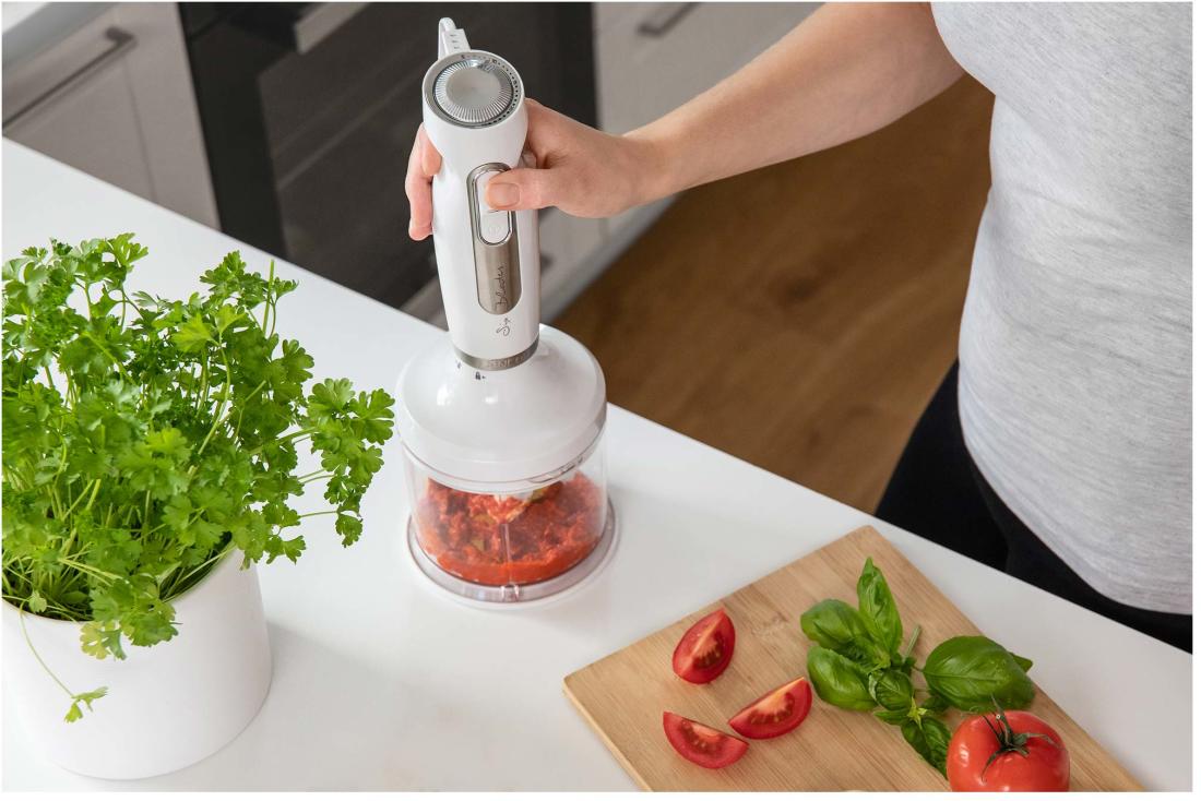 A készülékhez több különböző fejet lehet rögzíteni. Az egyik turmix fejjel, szinte bármit össze tud mixelni, például kisebb harapnivalókat, lágy gyümölcsöt és zöldséget. A finom krémes levest pürésítse még főzés közben, vagy készítsen bármilyen italt felfrissülésére vagy fitneszre. A rozsdamentes acél fej hat minőségi késsel van ellátva, amelyek szintén rozsdamentesek és titánfelülettel rendelkeznek.