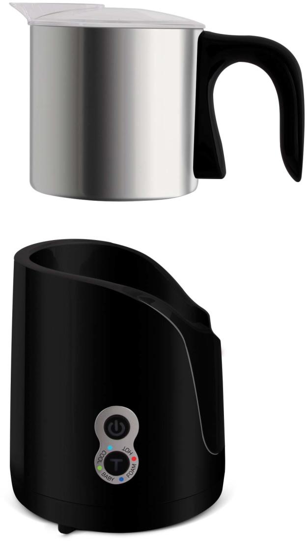 A rozsdamentes acél kialakításnak köszönhetően a tej melegítés közben nem tud odaégni, valamint stílusos megjelenést is ad a fekete szín kombinációjával. Egyszerű karbantartása is, hisz a kanna mosogatógépbe mosható. A megfelelő stabilitást a csúszásmentes talpak biztosítják.