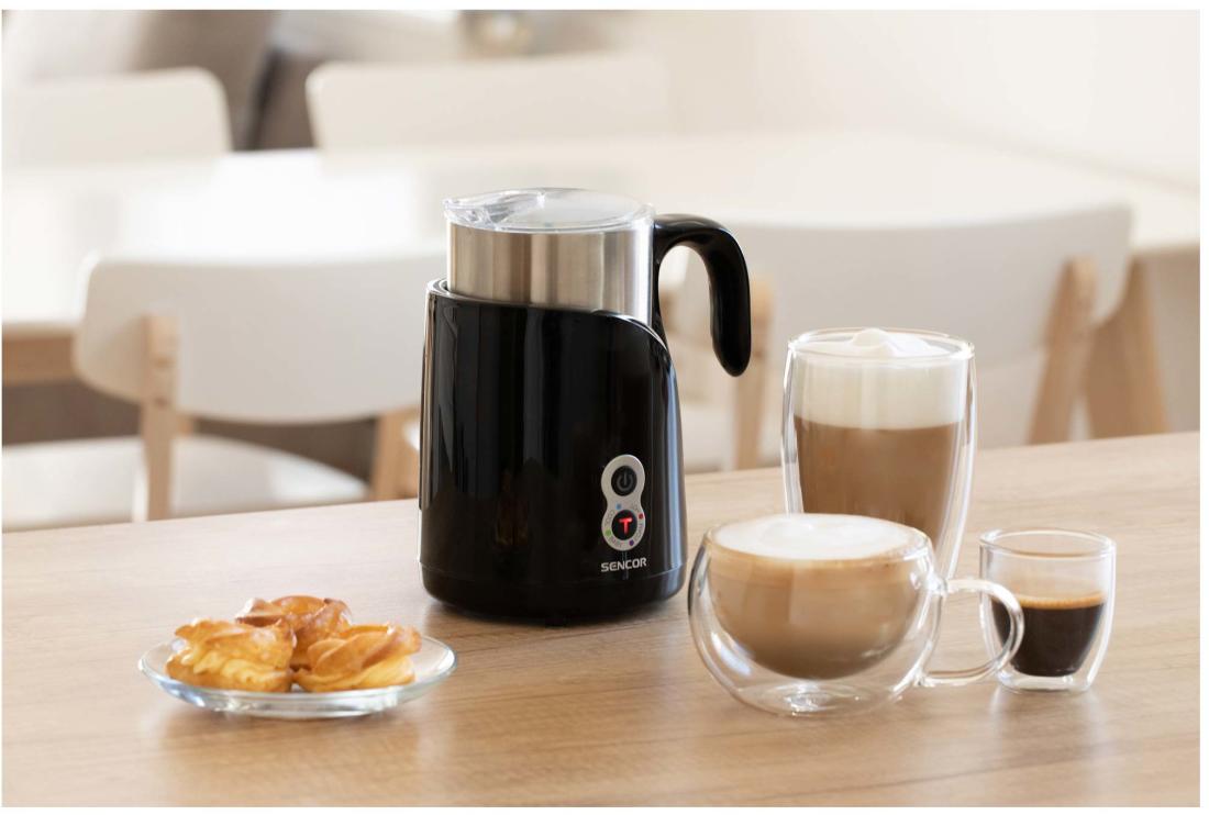 A Sencor SMF 4000BK tejhabosító készüléket a latte, a cappuccino, a frappé és más tejeskávé kedvelők értékelni fogják. Különböző típusú habok készítésére kiválóan alkalmas. Egyszerre 150 ml-t tud habosítani és 300 ml tejet felmelegíteni. A tejet induktívan melegíti, amíg el nem éri az optimális 68 °C-os hőmérsékletet. Rövid időn belül otthona kényelmében élvezheti a finom kávét habosított tejjel, mint egy igazi baristától.