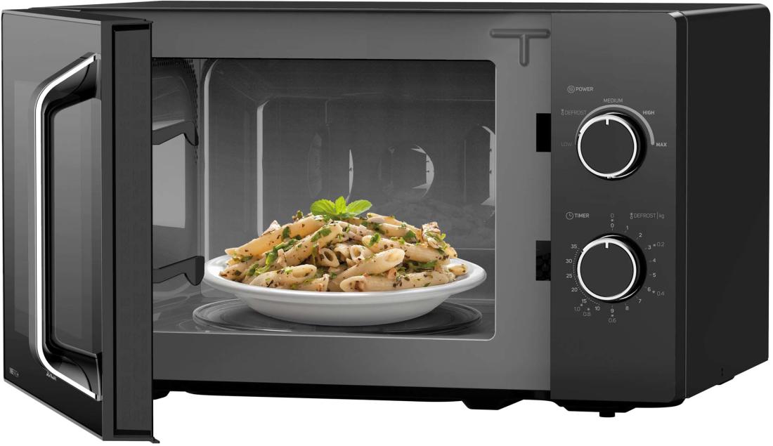 Az egész folyamat egyszerű, praktikus és mindenekelőtt gyors! Az öt üzemmód az egyes ételek és élelmiszerek mikrohullámú teljesítményének csökkentésére vagy növelésére szolgál. Kiválóan alkalmas melegítésre, főzésre, de ételek kiolvasztására is. Csak forgassa el a szabályozót, állítsa be a kívánt üzemmódot és időt 35 percen belül.