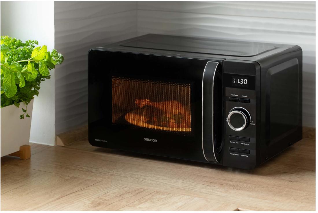 A Sencor mikrohullámú sütője még maximális teljesítmény melletti működés esetén is mindössze 65 dB (A) zajszinttel rendelkezik. Szinte észre se fogja venni, hogy működő a készüléket csak a beállított programok végét jelző hang figyelmezteti, hogy elkészült az étel!