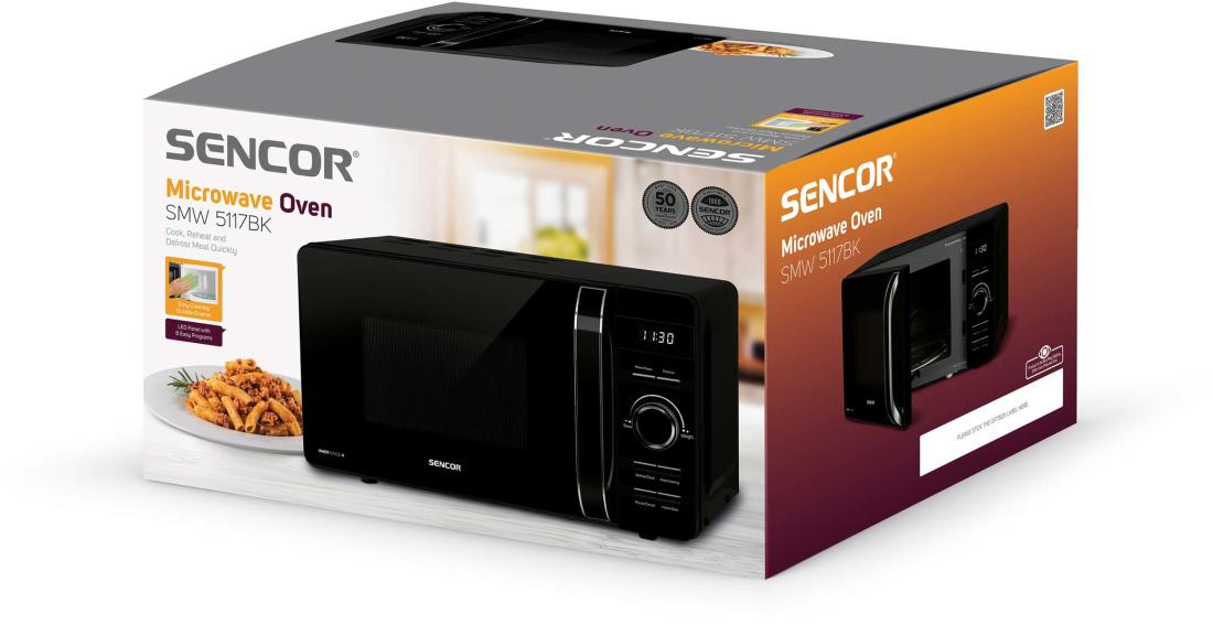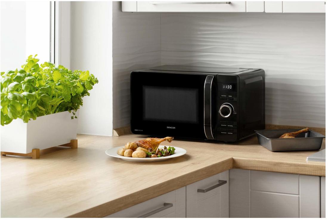 Fedezze fel a Sencor minőségi mikrohullámú sütőjének az SMW 5117BK előnyeit. Többé nem kell azon gondolkodnia, hogy milyen időt vagy teljesítményt kell választania a megfelelő hőmérsékletű étel elkészítéséhez. A beépített LED vezérlőpanelen és digitális időzítőn keresztül végig ellenőrizheti a működési folyamatokat, a forgatógombbal kiválaszthatja a programokat és a funkciókat. 5 mikrohullámú teljesítményfokozat és 3 olvasztási mód közül állathatja be az Önnek éppen megfelelőt. A 8 automata program számos finomsághoz, például pattogatott kukorica készítéshez ajánlott. Ha hozzáadjuk a korábban felsorolt funkciókhoz a késleltetett indítást és a 60 perces időzítő funkciót is, akkor egyértelmű kiváló választás ez a mikrohullámú sütő.