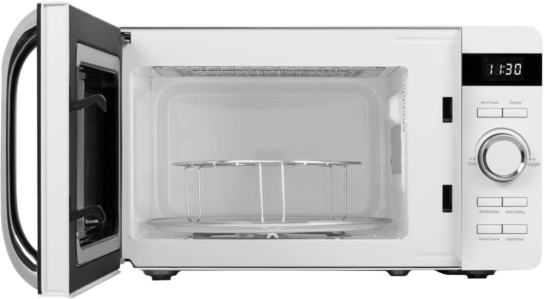 A fehér és a fekete szín kombinációja ezt a mikrohullámú sütőt minden konyha ékességévé teszi. A funkcióinak és a beépített programok változatosságának köszönhetően a legtöbb étel elkészítésével megbirkózik. A kiolvasztás esetén három mód közül választhat, mégpedig egy a hús, a szárnyas vagy tenger gyümölcsei lehetőségei közül. Nagy előnyt jelent a késleltetett indítási funkció használatának lehetősége is.