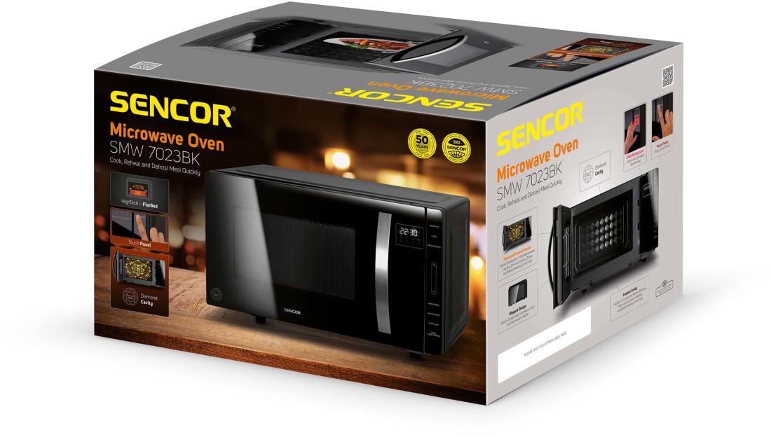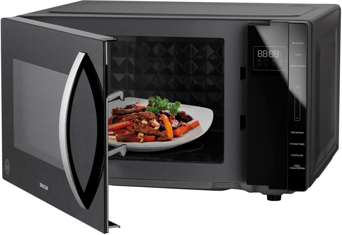 A Sencornak nagyon fontos, hogy termékeik mindenekelőtt tökéletesen működőképesek legyenek, és a felhasználók kényelmesen élhessenek velük. Az igazán tágas belsővel rendelkező mikrohullámú sütő maximális űrtartalma 23 liter, ami lehetőséget ad arra, hogy akár viszonylag nagy edényeket is bele tud helyezni. Az edények, tányérok akár 27 cm átmérővel is rendelkezhetnek, vagy éppen ellenkezőleg, olyan szokatlan formájú edények lehetnek, amelyeket egy versenytárs, forgótányéros mikrohullámú sütőben nem lehetne felmelegíteni, mivel forgatáskor a megakadna.