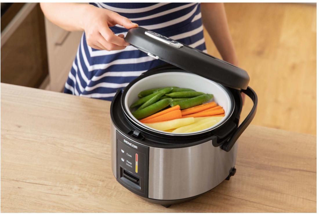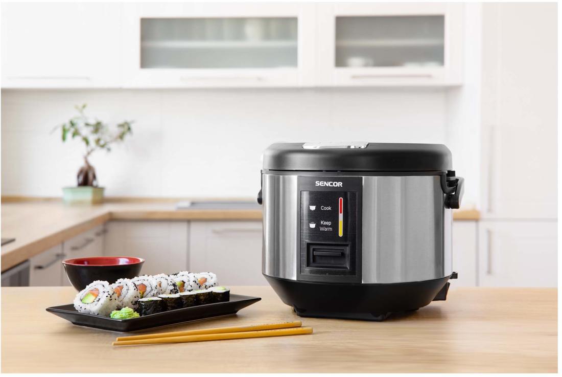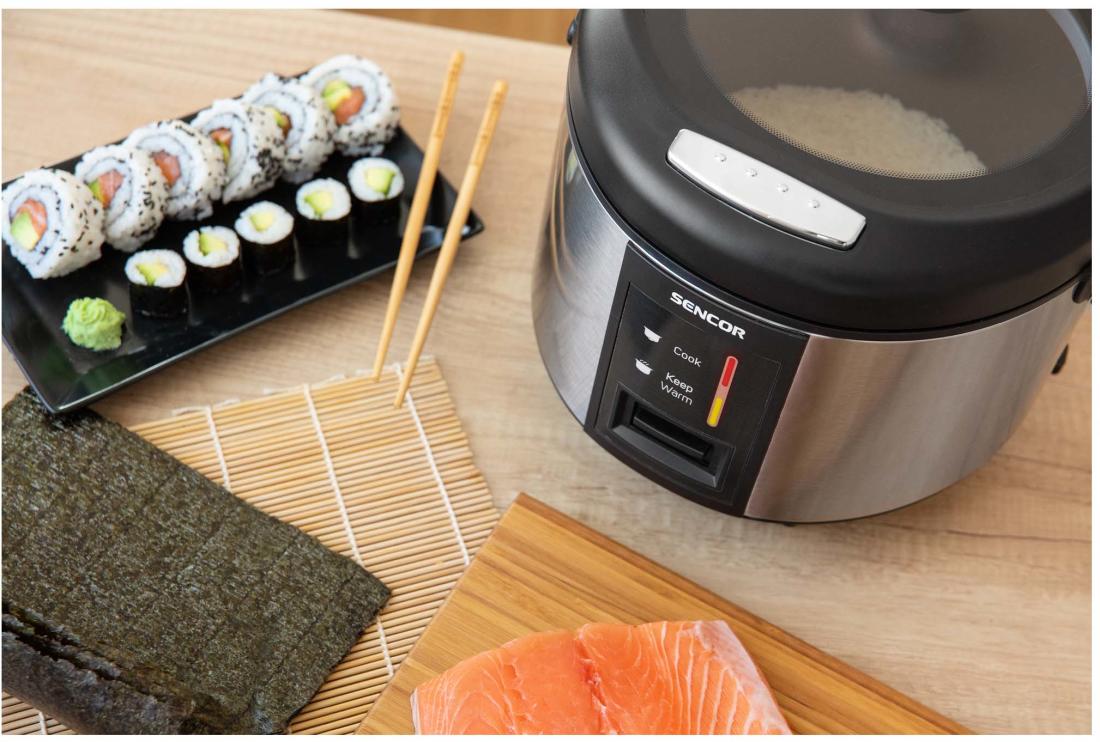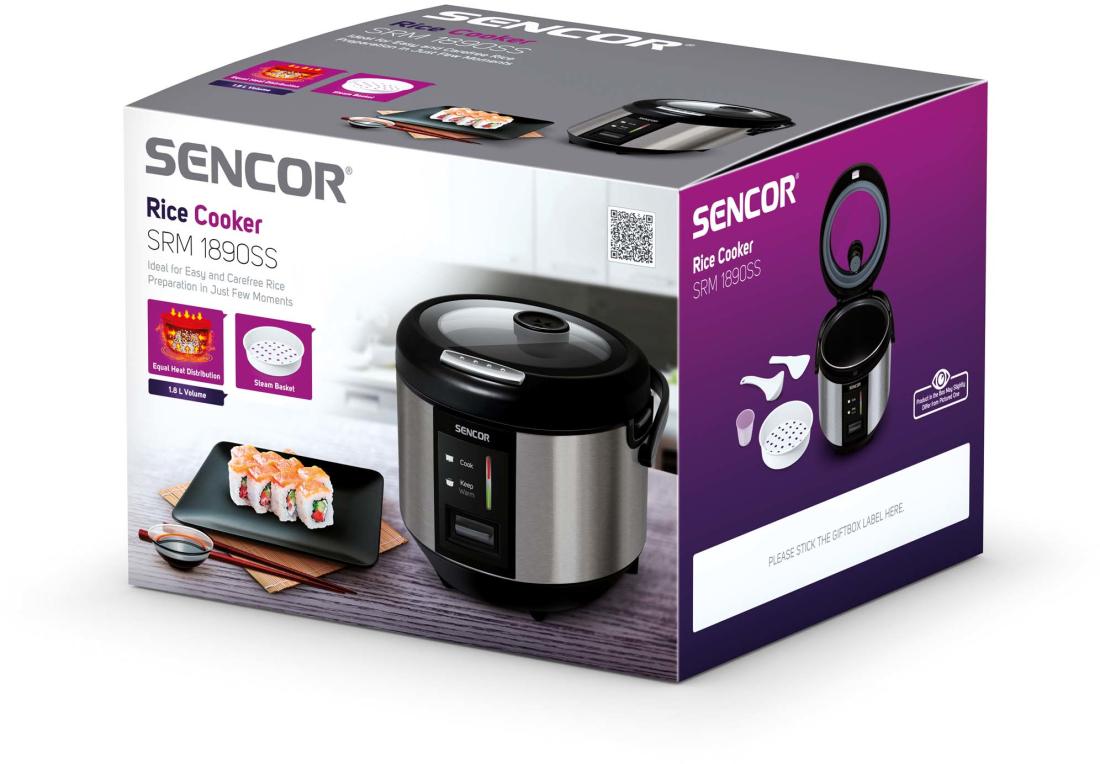 A Sencor SRM 1890SS egy speciális elektromos főzőedény rizs készítésére. Bármilyen típusú rizs elkészítésére kiválóan alkalmas a normál fehér rizstől, a különleges sushi rizsig. A készülék a gőz segítségével készíti el a rizst, a készülék tetején kialakított nyíláson távozik a felesleges mennyiségű pára. A rizsfőző akár 700 W teljesítményt is elérheti, az kapacitása pedig 1,8 liter, amely kb. 1500 g rizs elkészítésére alkalmas. A speciális belső kialakításnak köszönhetően az étel nem tapad le, így könnyen és egyszerűen kivehető és tisztítható. A rizsfőző folyamat végeztével a készülék automatikusan egy melegen tartó üzemmódba kapcsol, mellyel akár 6 órán keresztül is melegen tartható az elkészült rizs.