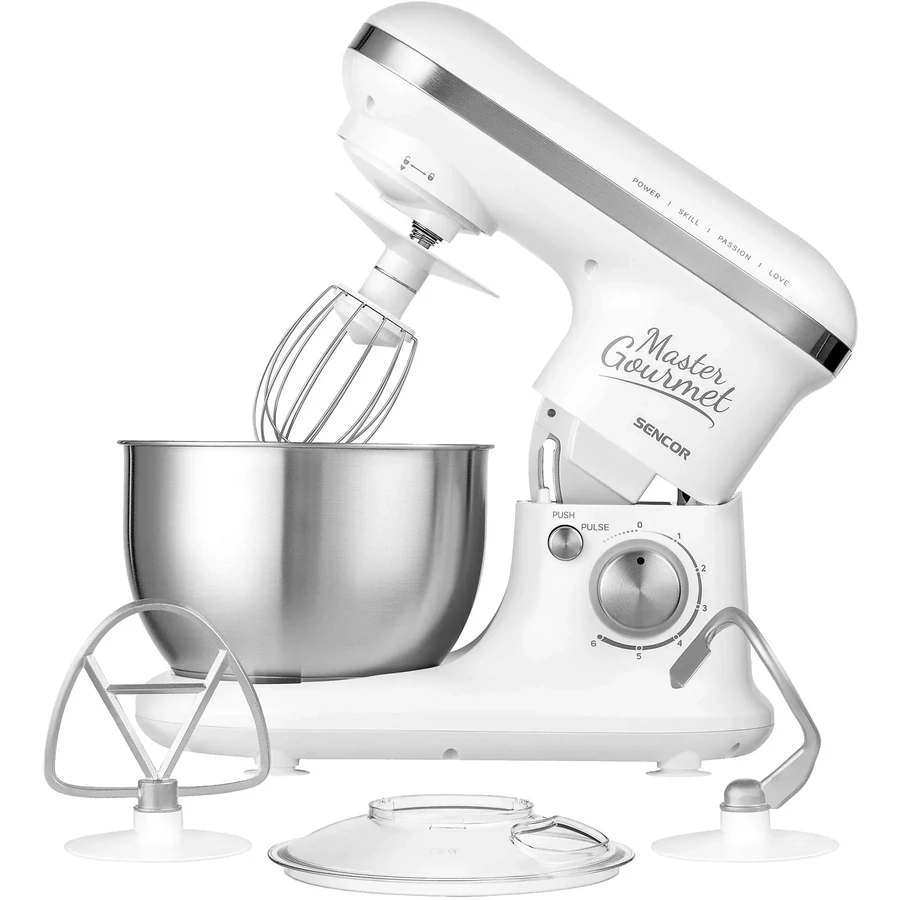 A Sencor STM 3620WH-EUE3 konyhai robotgép nagy 4 literes rozsdamentes acél táljában, nagyobb mennyiségű tészták, krémek készítésére is alkalmas. A csomag tartalmát is képező 4 különböző cserélhető fejeknek köszönhetően lehetővé teszik a tökéletesen felvert tejszínhab vagy könnyű tojáshab elkészítését, de a dagasztás, illetve könnyű tészták elkészítése sem okoz neki gondot. A bolygóműves rendszer lehetővé teszi az alapanyagok maradéktalan feldolgozását és ezáltal minden összetevő alapos összekeverését. A bolygórendszerű működés lényege, hogy a keverőszár a saját tengelye és a hajtómű tengelye körül is forog. A billenő kar kényelmesebbé teszi a munkavégzést és könnyebbé a tartozékok cseréjét a bajonett-rendszerű tartozéknak köszönhetően. A Sencor a robotgépek gyártása során nagy hangsúlyt fektet a biztonságos használatra.