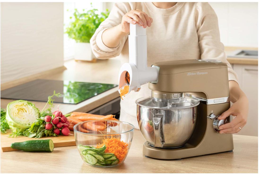 A robotgép kialakításakor fontos szempont volt a funkcionalitás. Az összes tartozék rendkívül egyszerűen cserélhető köszönhetően a bajonett rendszerű kialakításnak. Legyen szó dagasztásról, habverésről, darálásról, turmixolásról az alapanyag hőmérsékletétől függetlenül a készülék szinte nem ismer akadályt. Ennek a köszönhetően helyet spórolhat a konyhájában, hiszen nincs szükség minden feladathoz más és más készülékre.