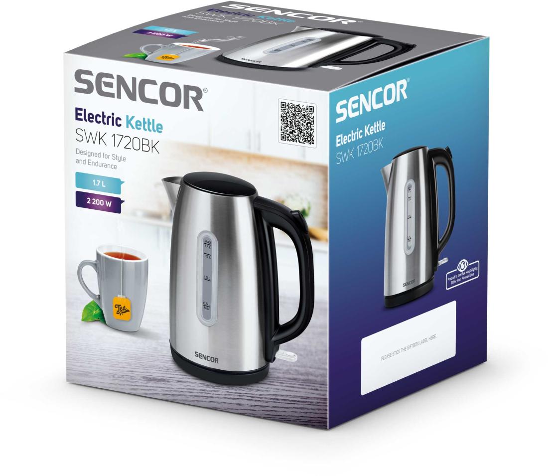 A Sencor SWK 1720BK egy nagy teljesítményű nemesacélból készült elektromos vízforraló 2200 watt maximális teljesítménnyel, mellyel időt és energiát takaríthat meg. Akár 1,7 liter vizet is képes egyszerre felforralni, így 3-5 fős háztartásokba megfelelő választás. A készülék használatát ergonomikusan kialakított fogantyú teszi kényelmesebbé, valamint a markolatba épített fedélnyitó gomb.