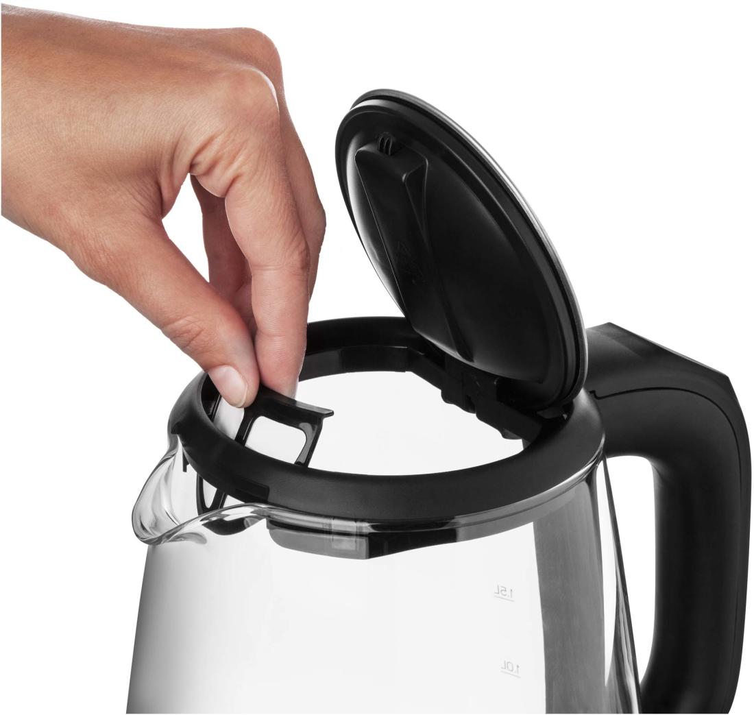 Nyissa ki egyszerűen a fedélen lévő gomb megnyomásával. A fogantyú felső részén található a hőmérséklet-szabályozóval ellátott panel. A beépített túlmelegedés elleni védelemnek köszönhetően kikapcsol, ha nincs benne víz. Automatikusan kikapcsol, ha a víz felmelegszik. Nem csúszik ki a kezéből, mert ergonomikusan kialakított fogantyúja csúszásgátló borítással rendelkezik. A jól átgondolt központi 360°-os STRIX csatlakozónak köszönhetően bármikor könnyedén visszahelyezheti az állványra anélkül, hogy foglalkoznia kellene azzal, hogy melyik irányba fordítja.