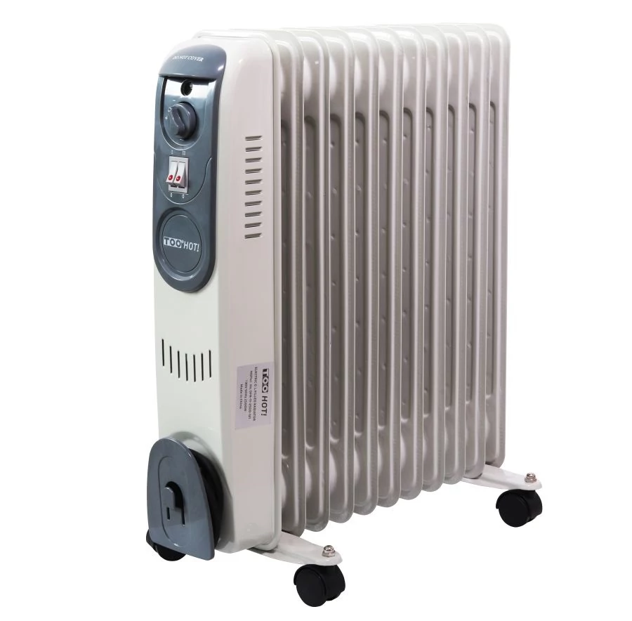 A TOO Hot! OFR-11-2500-121 egy biztonságos és könnyen kezelhető 11 tagú elektromos olajradiátor. Gyors felmelegedést követően sokáig tárolja a hőt, így leállítás után is hosszasan meleg marad a helyiségben. Termosztátjával egyszerűen beállítható a kívánt hőmérséklet. A maximális biztonság érdekében túlmelegedés elleni védelemmel van felszerelve, illetve a készülék automatikusan kikapcsol, ha vízszintes helyzetbe kerül.