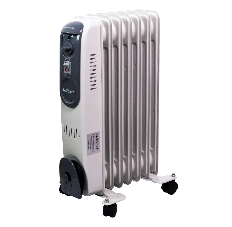A TOO Hot! OFR-7-1500-121 egy biztonságos és könnyen kezelhető 7 tagú elektromos olajradiátor. Gyors felmelegedést követően sokáig tárolja a hőt, így leállítás után is hosszasan meleg marad a helyiségben. Termosztátjával egyszerűen beállítható a kívánt hőmérséklet. A maximális biztonság érdekében túlmelegedés elleni védelemmel van felszerelve, illetve a készülék automatikusan kikapcsol, ha vízszintes helyzetbe kerül.