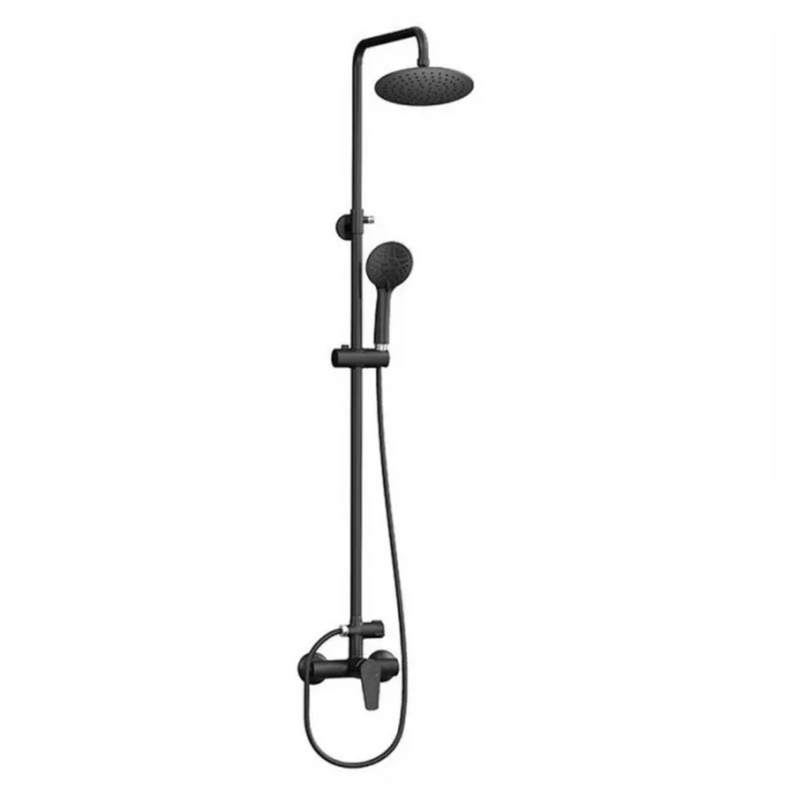 Welland Arezzo zuhanyrendszer falon kívüli felszállócsővel. A váltókapcsoló segítségével a víz folyása a zuhanyrózsából vagy a 20 cm-es fejzuhanyból történhet. készlet tartalmaz egy 20 cm-es fejzuhanyt és egy zuhanyrózsát, mindkettő modern Anti-Calc rendszerrel.