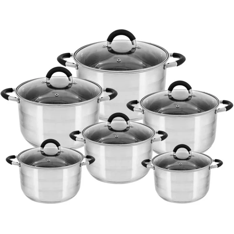 12 részes edénykészlet a ZILNER cégtől rozsdamentes acélból. A króm-nikkel acél, amelyből az egész szett készül, rozsdamentes, strapabíró és hosszú élettartamú. A felhasznált anyag nem csak a lehető legjobb, hanem remekül is néz ki, és rendkívül könnyen tisztítható, valamint baktériumölő tulajdonságokkal is rendelkezik. Az edények kívülről szatén (fényes csíkokkal rendelkeznek) és belül fényesek. Ferromágneses 5 rétegű akutermikus alj (5mm) alumínium réteggel garantálja a tökéletes hőelosztást és tárolást. A szettben található összes edény minden típusú tűzhelyen használható, beleértve az indukciós konyhát is. Szegecselt (polírozott) fogantyúk szilikon béléssel. Minden edény belső oldalán praktikus mérőpohár található. Tisztességes, mérsékelten nehéz indukciós edények, nagyon kedvező áron.